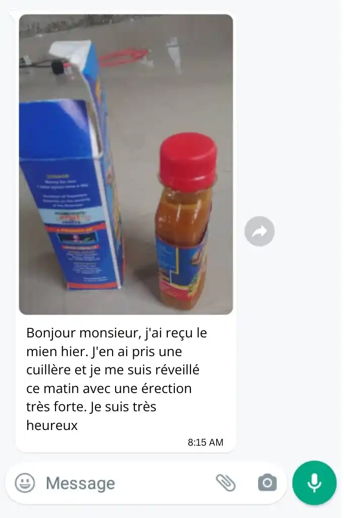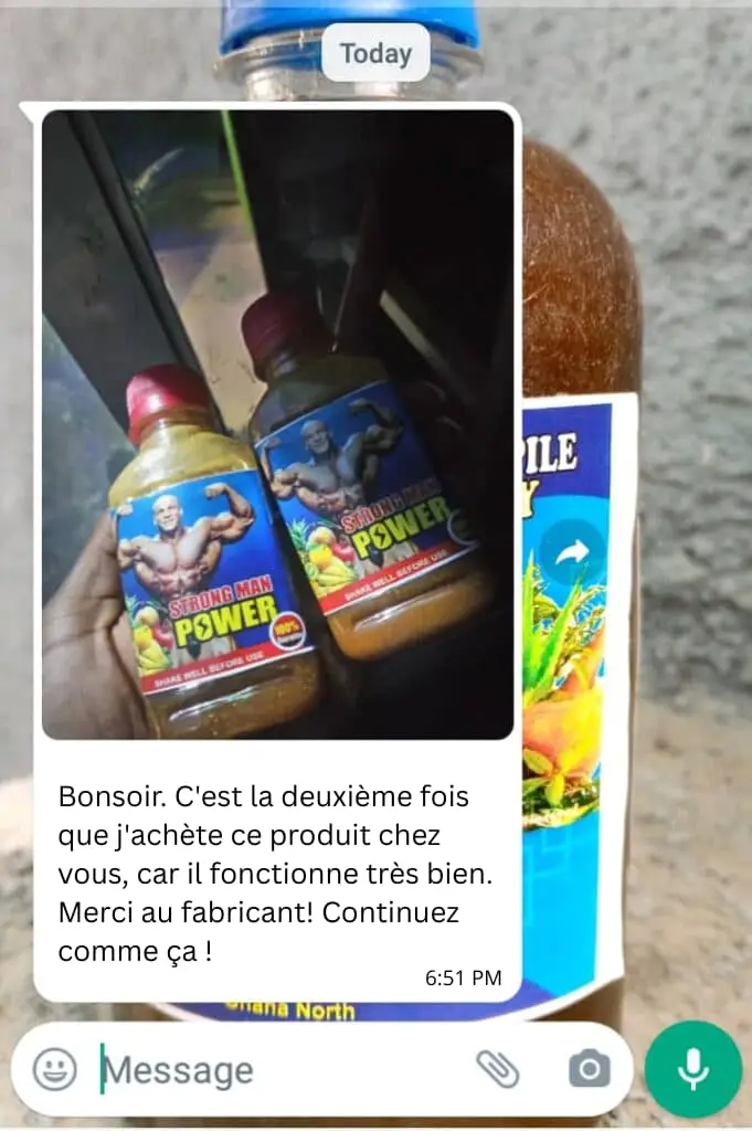 Deuxième option: Vous commandez le sirop Strongman et faites de votre prochaine relation intime un moment inoubliable, rendez votre femme fière de vous et sentez-vous comme un roi.